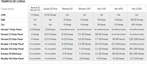 *Al usar pilas AA de autodescarga leve recargables NiMH de Goal Zero.